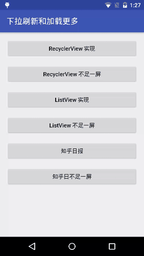 下拉刷新比较容易实现,因为 Android 官方的 support 组件中就实现了一个下拉刷新组件:SwipeRefreshLayout